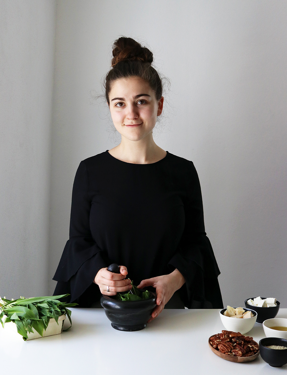 So it was spring equinox and our forests start blooming and getting all green again. This means a very happy me! Obviously I had to go for a long walk to fill my lungs with that fresh spring air and soak in all those soft sunbeams. On our way trough the woods, we passed a spot, where my brother and I used to drive around with our bikes. It’s such a magical place with a lot of very small paths and every spring it was filled with a ton of wild garlic and flowers. We harvested quite a bit of the garlic on the way home and I made a fresh garlic pesto that night. I think it tasted even a bit better, because it was from this magical childhood place.